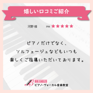 ピアノだけでなく、ソルフェージュなどもいつも楽しくご指導いただいております。